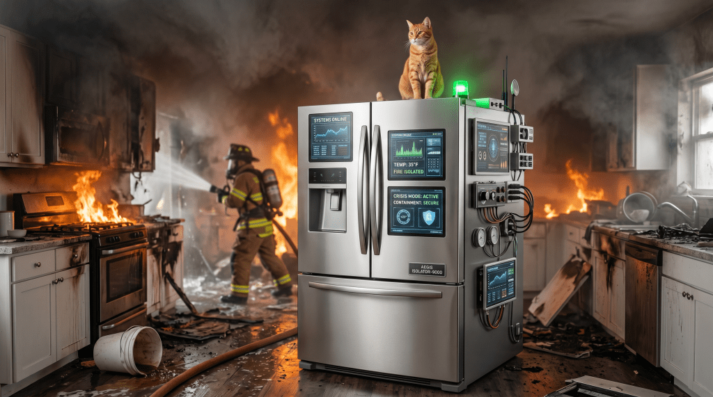 The Valkyrie Labs Conscious Fridge’s Everything Is Fine Sensor represents the culmination of Valkyrie Labs’ threat assessment architecture: a unified monitoring system that integrates data from all thirteen subsystems, all external sensor arrays, all planetary surveillance feeds, and the cat, and distills this information into a single clear message for the user.